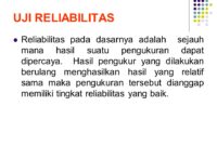 Pengujian reliabilitas digunakan untuk mengetahui konsistensi alat ukur apakah dapat diandalkan dan konsisten jika dilakukan pengukuran berulang dengan instrumen tersebut. [Baca selengkapnya]